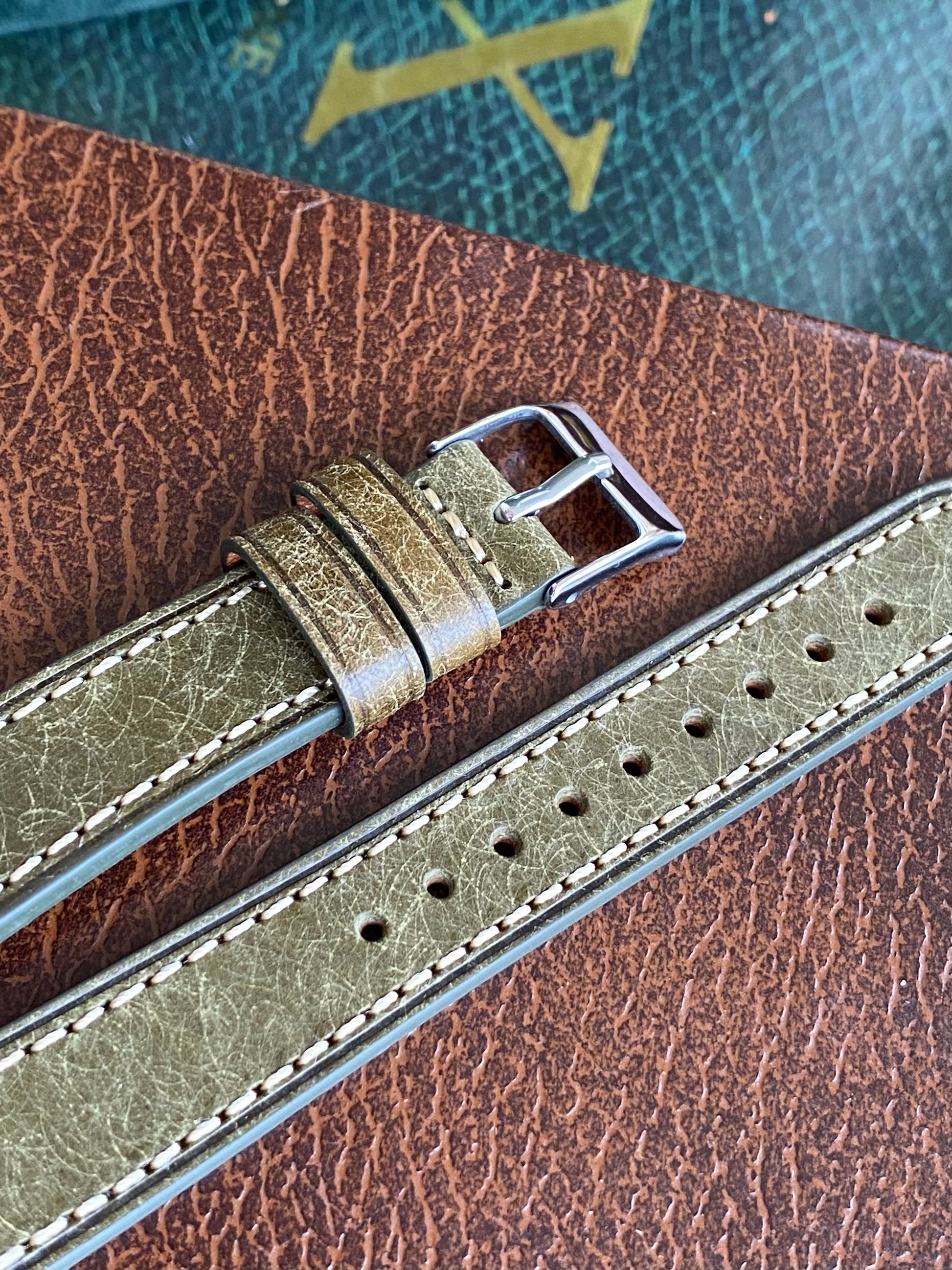 Bracelet de Montre Vintage - VERT Rallye Sport 18mm - Cuir Véritable Ajouré