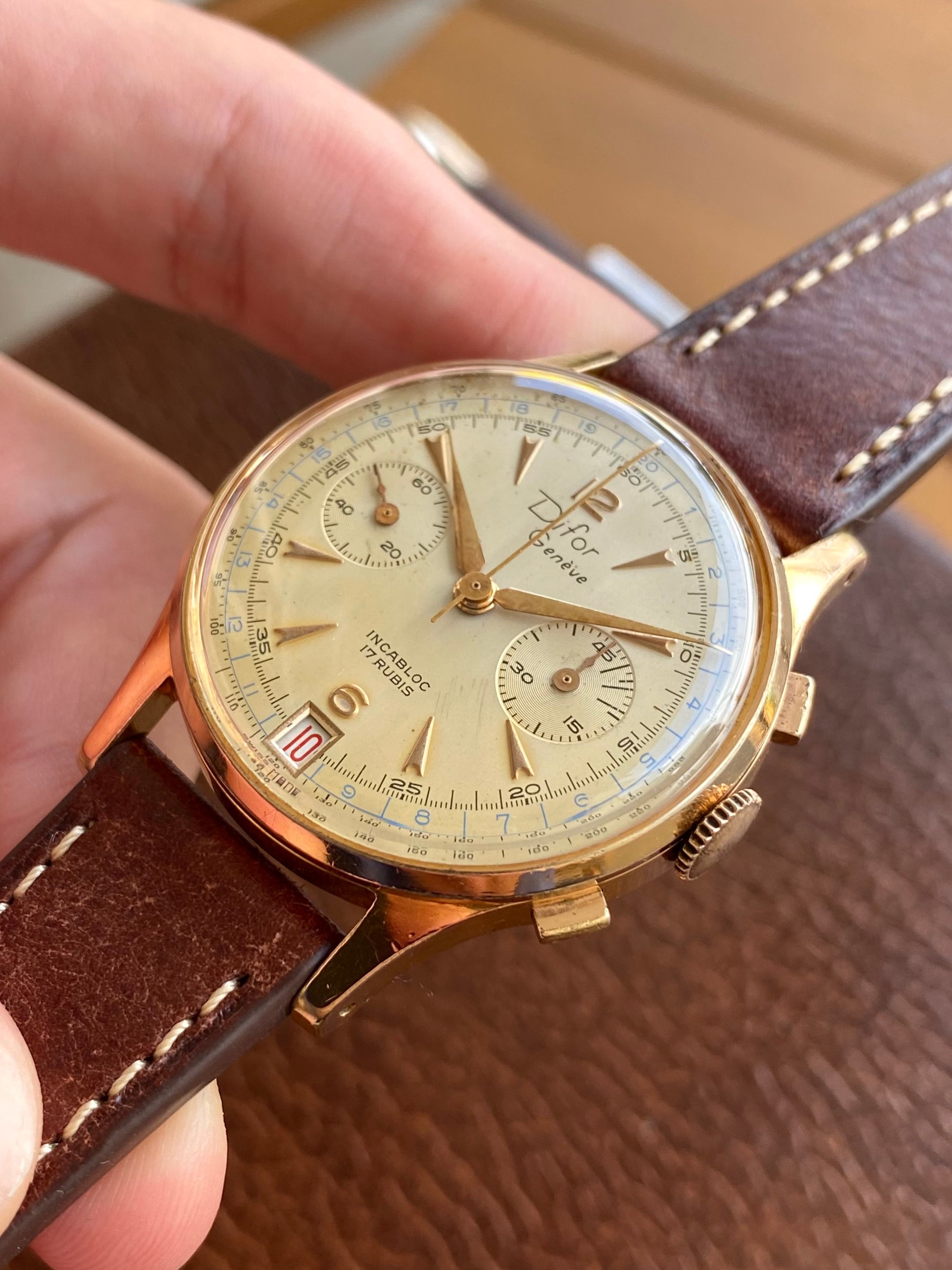 Difor Genève Chronographe Suisse Plaqué Or - Landeron 189 Date Montre Vintage Mécanique 1950
