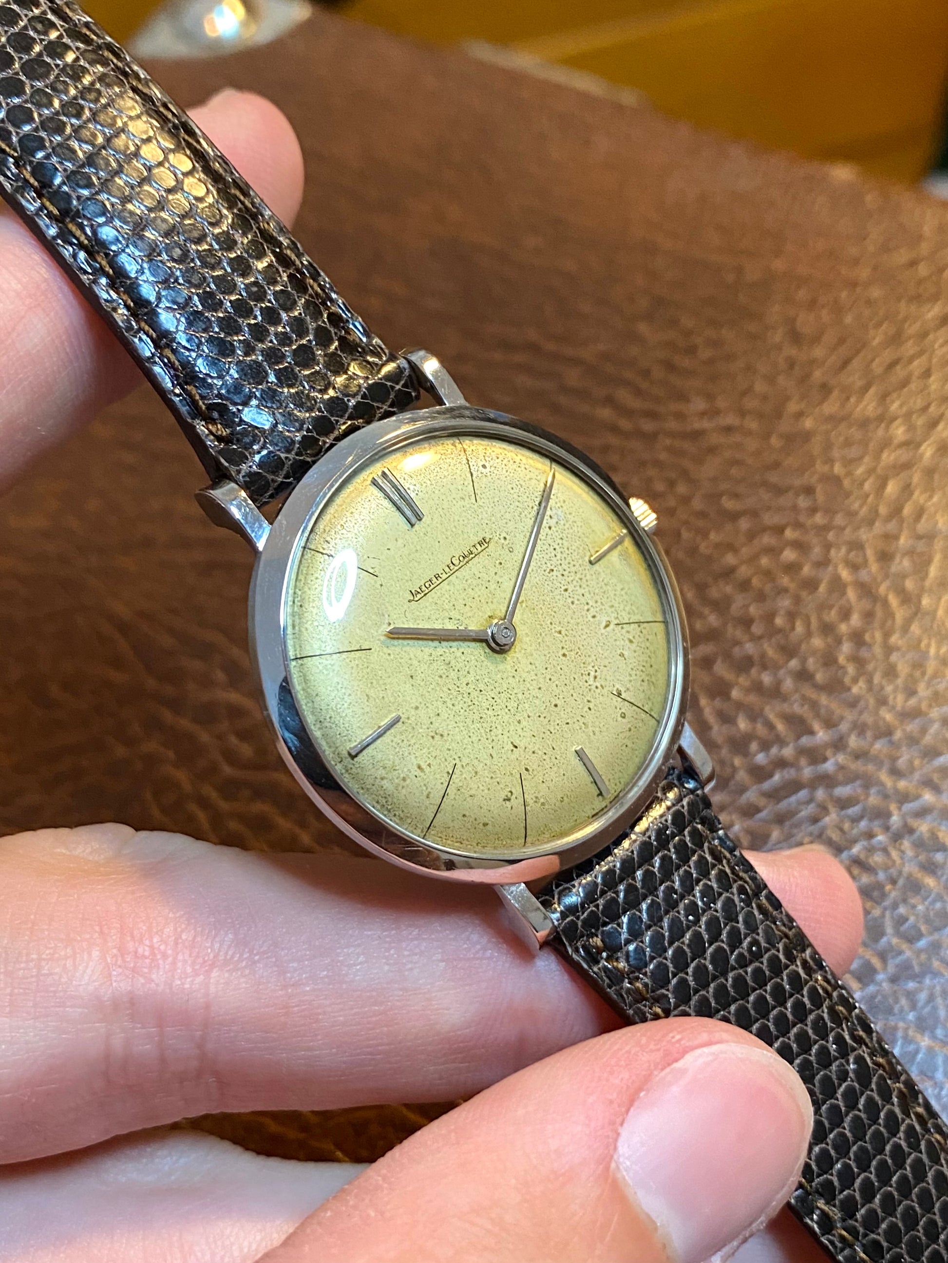 Pour les amateurs de patine et de pièces uniques, voici ce bel exemplaire de la très célèbre manufacture Jaeger-LeCoultre.