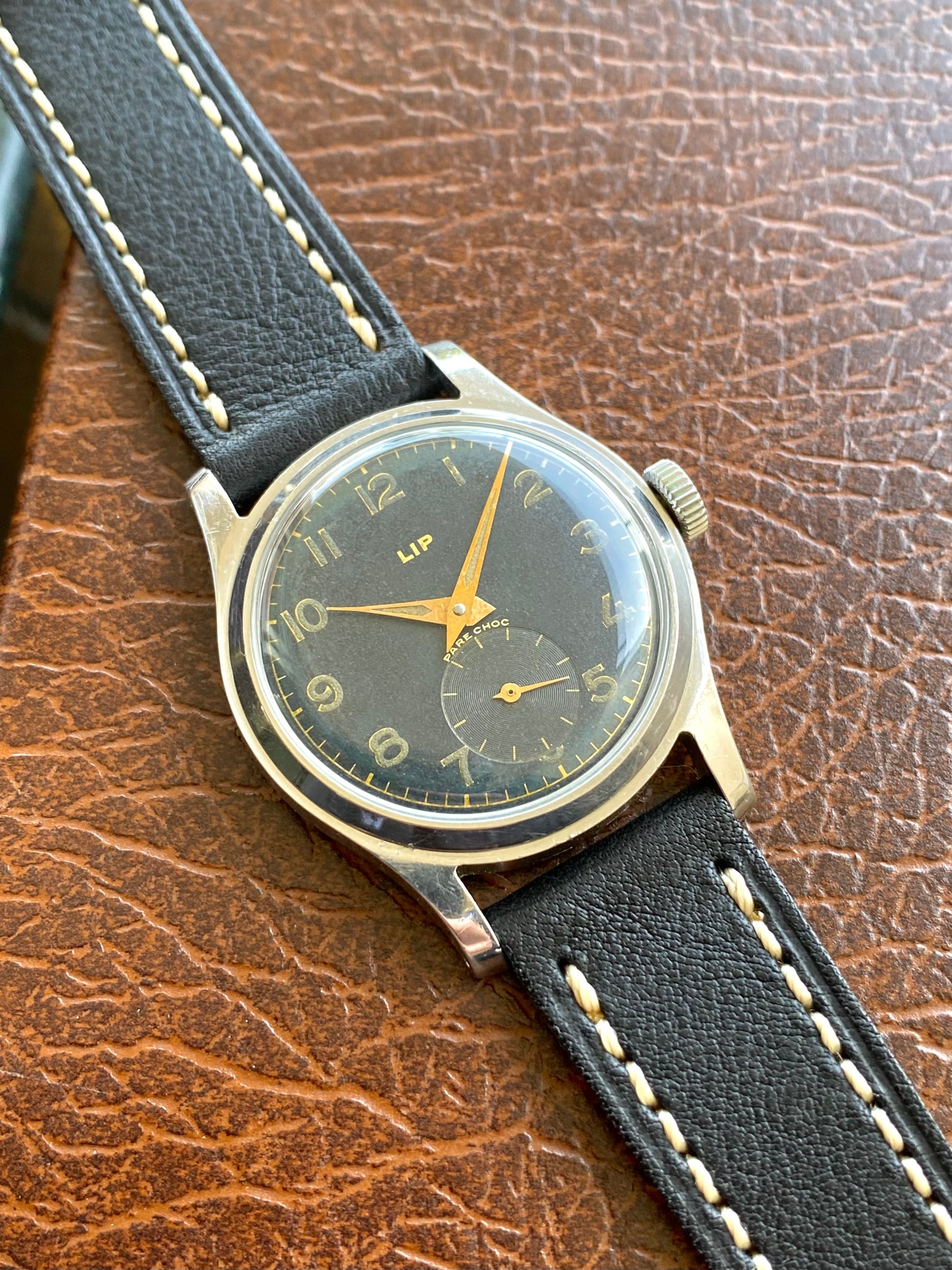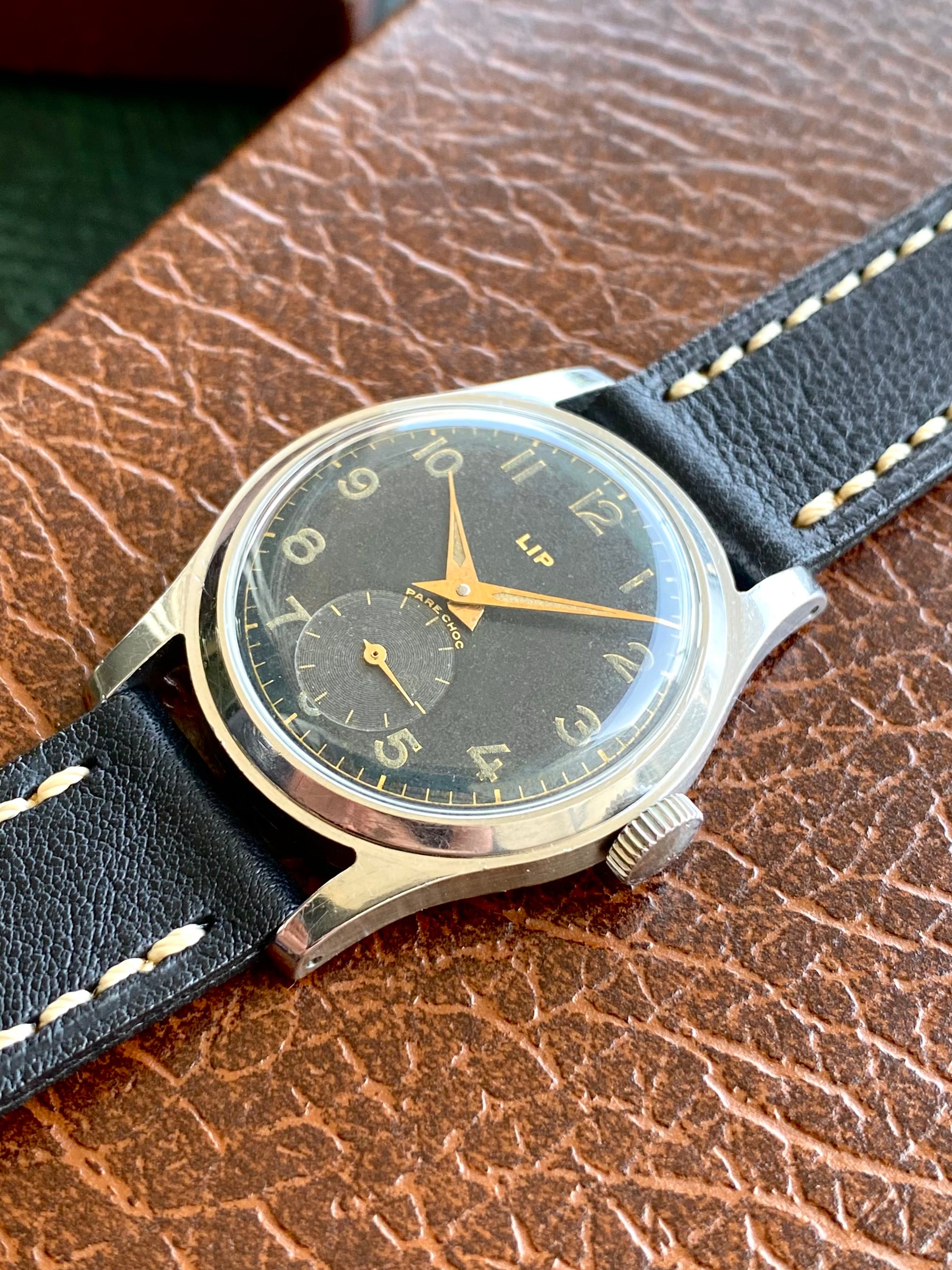 LIP R25 France - Cadran Noir - Montre Vintage Mécanique Militaire en Acier - 1940