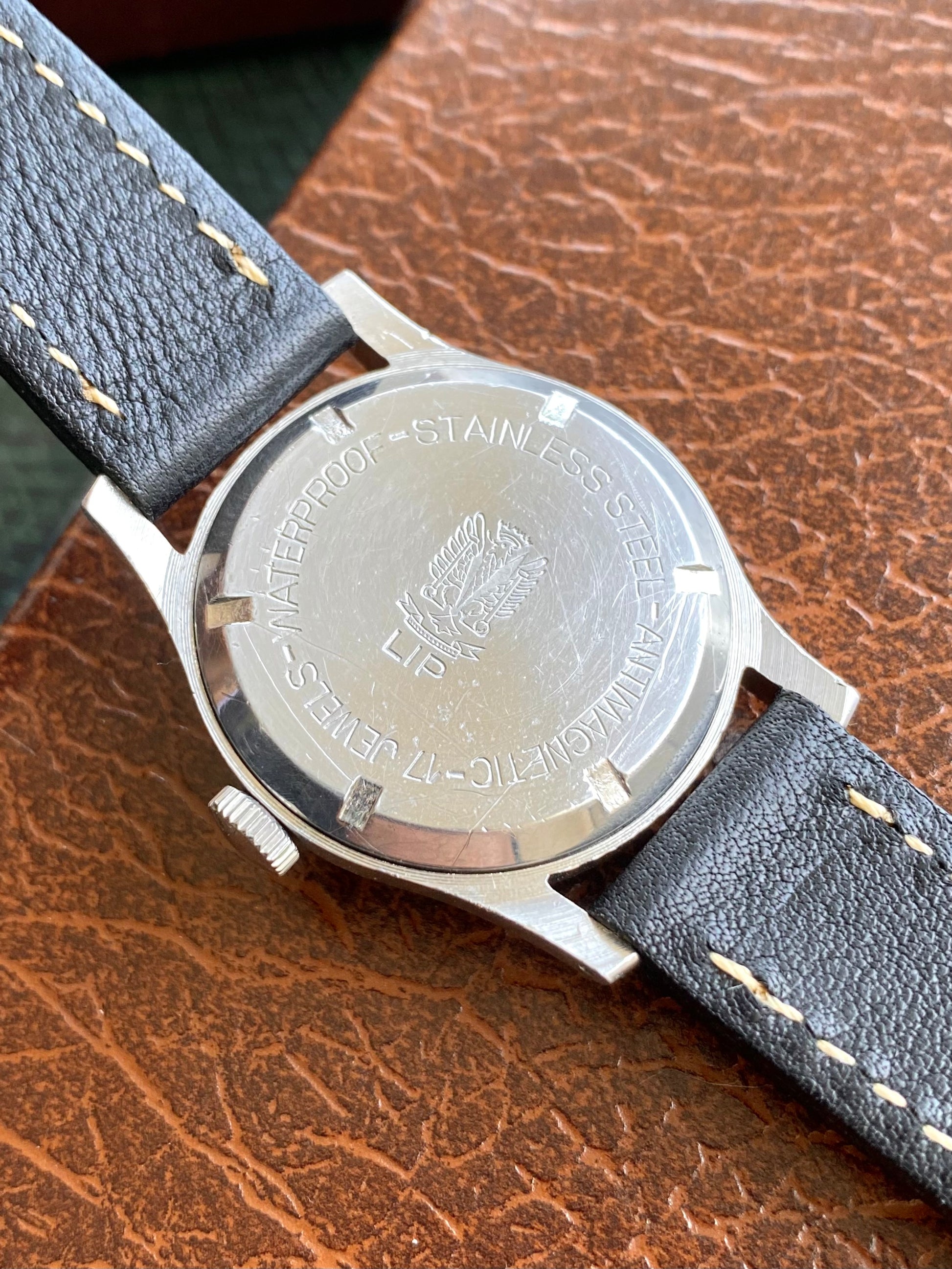 Boitier intégralement en acier inoxydable, fond vissé - Gravure LIP Besançon.