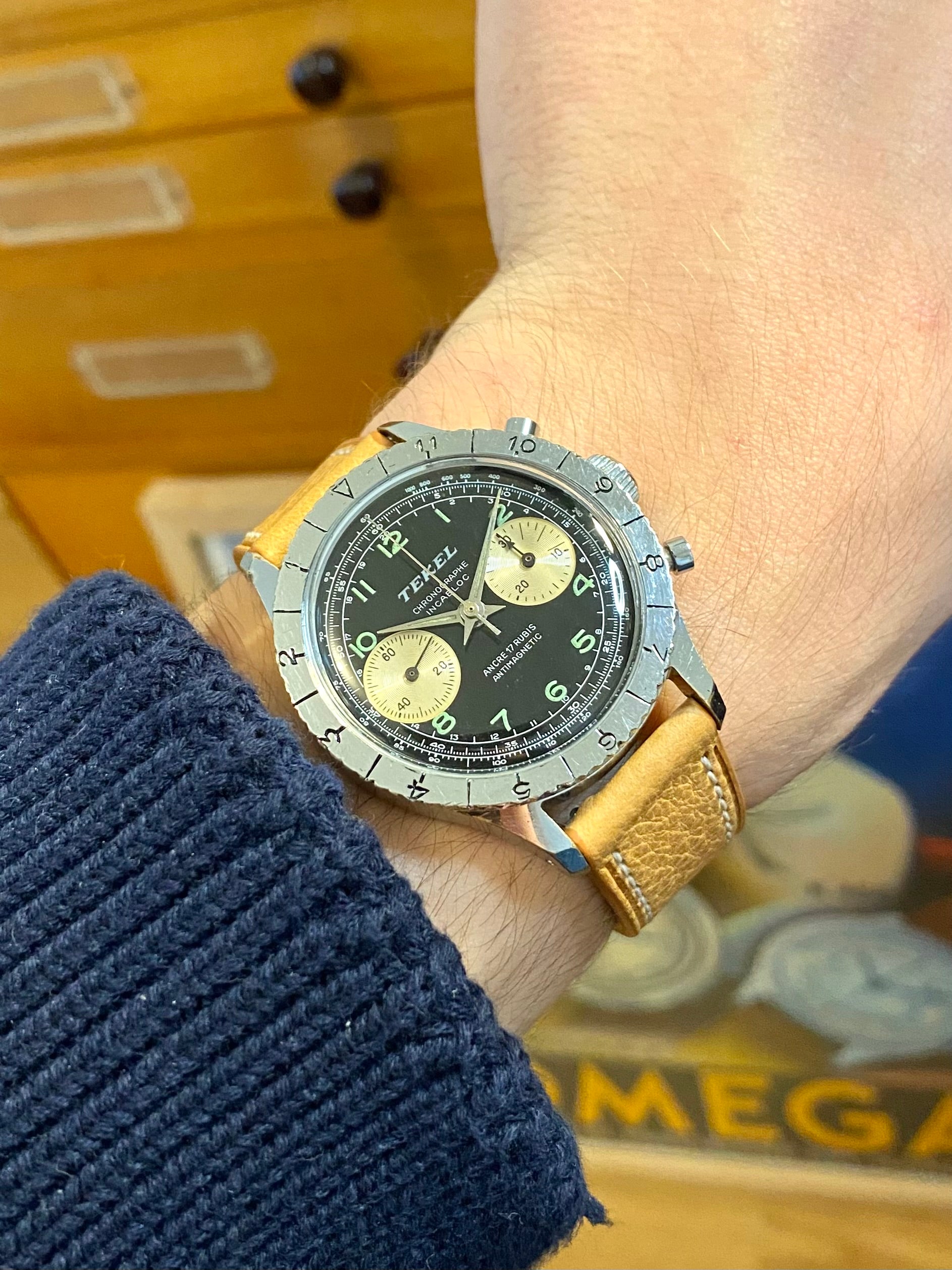 Montre Chronographe Aviation TEKEL - Montre Vintage Mécanique Landeron 248 - Cadran Noir Jumbo- 1960