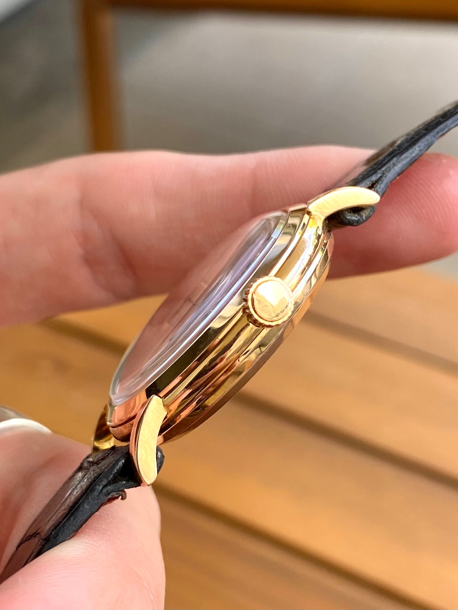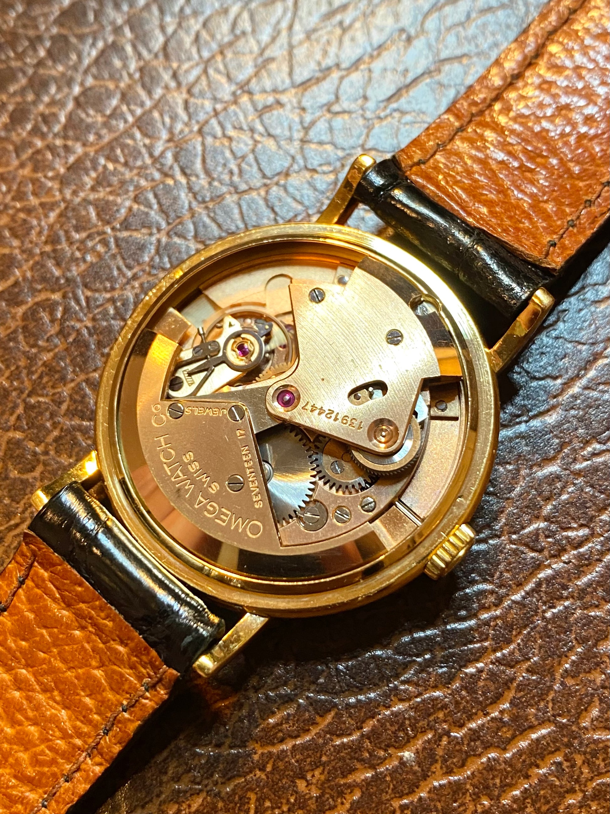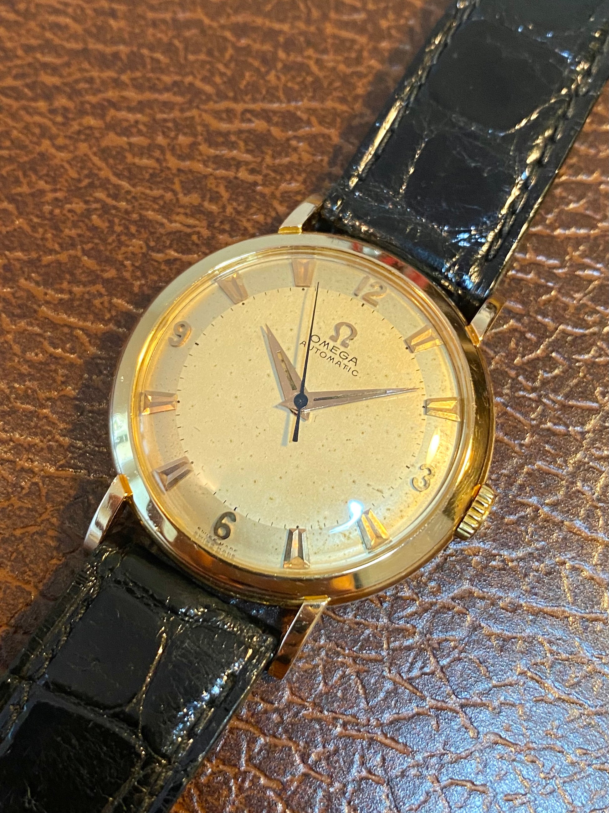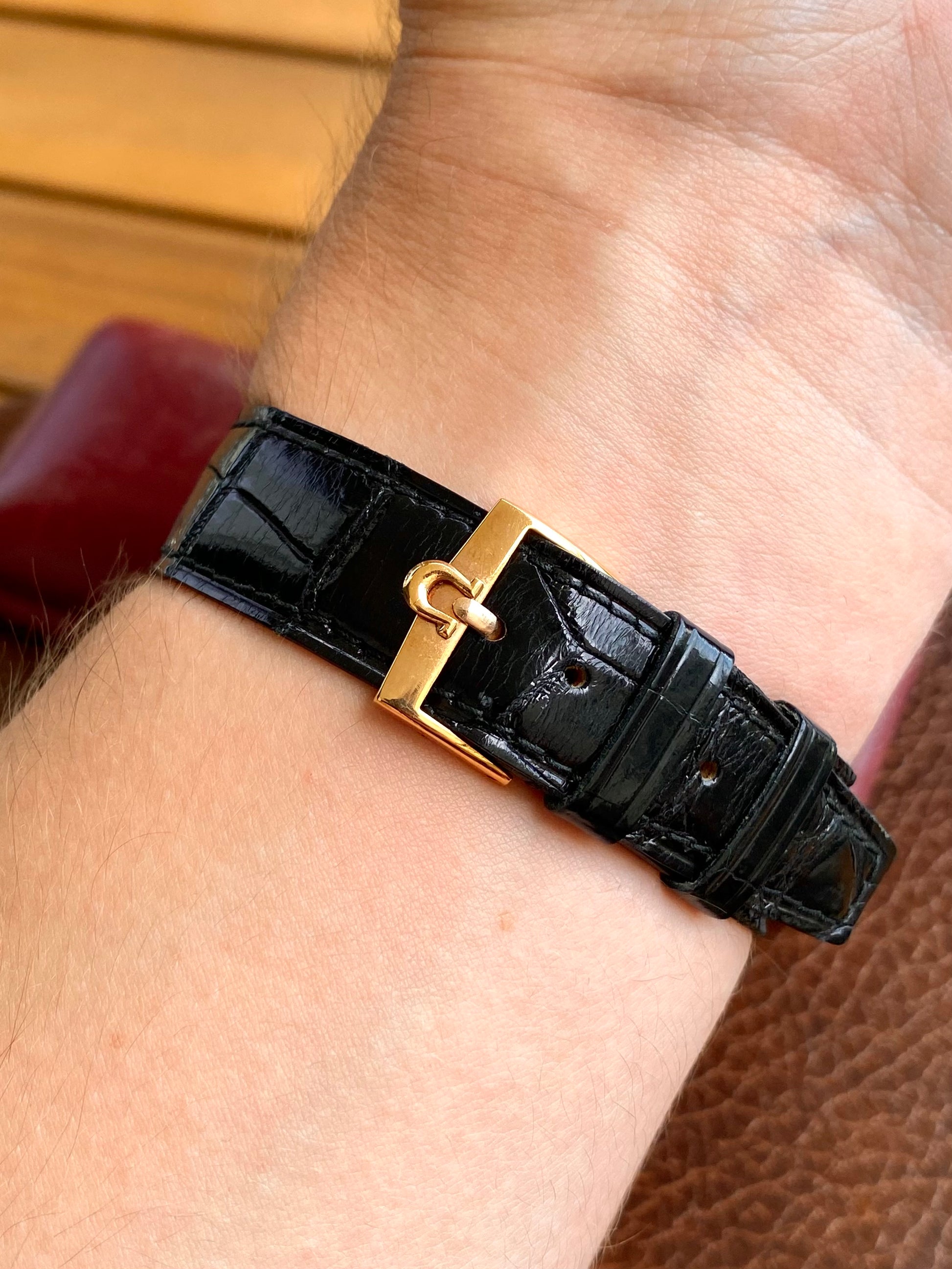 Pièce équipée d’un élégant et rare bracelet Omega d’époque, type croco.