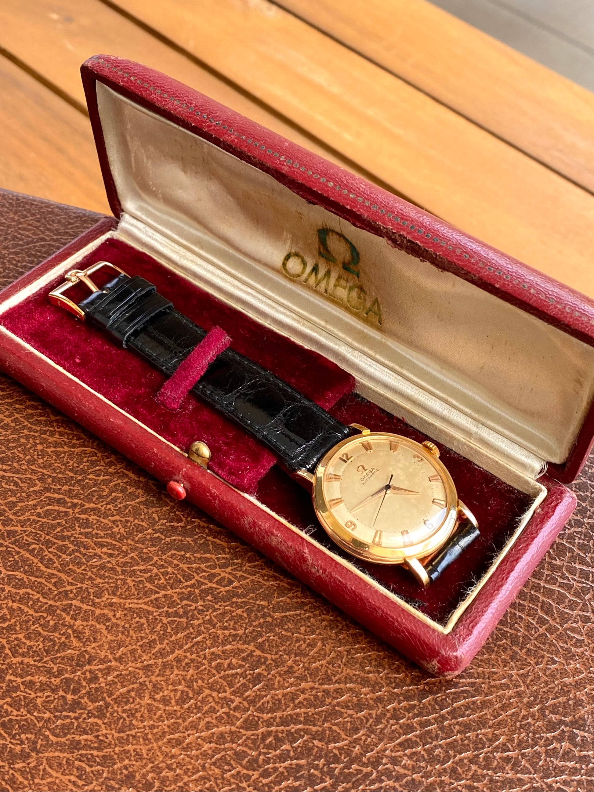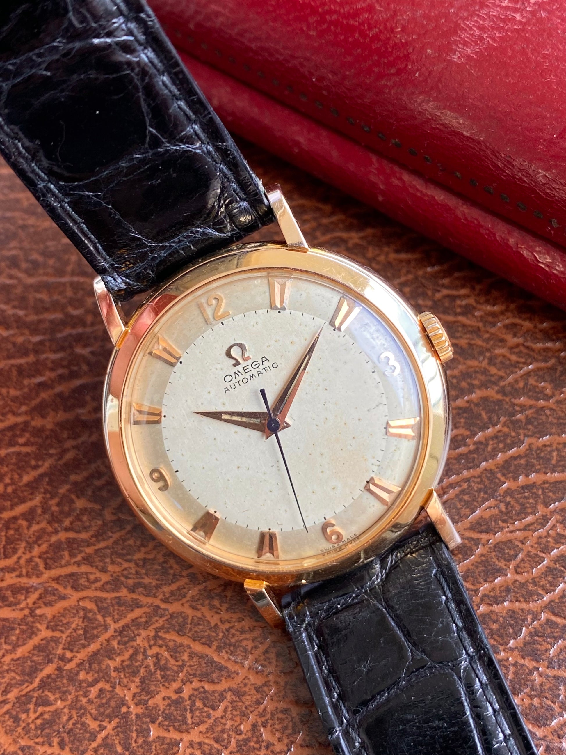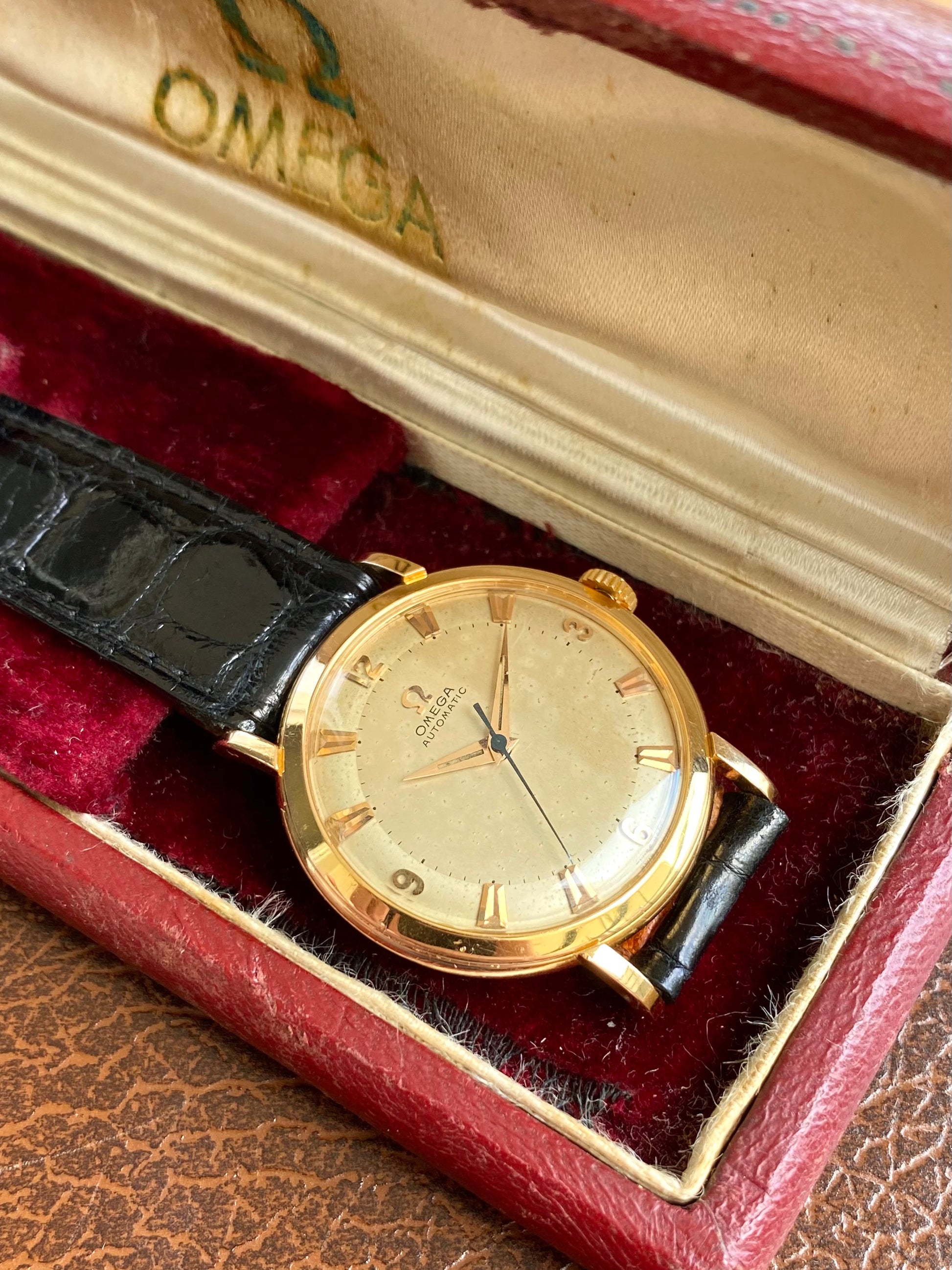 Omega Automatic Or Rose 18k 750/1000 Montre Vintage Mécanique Cal.354 Bumper 1953 + Boite