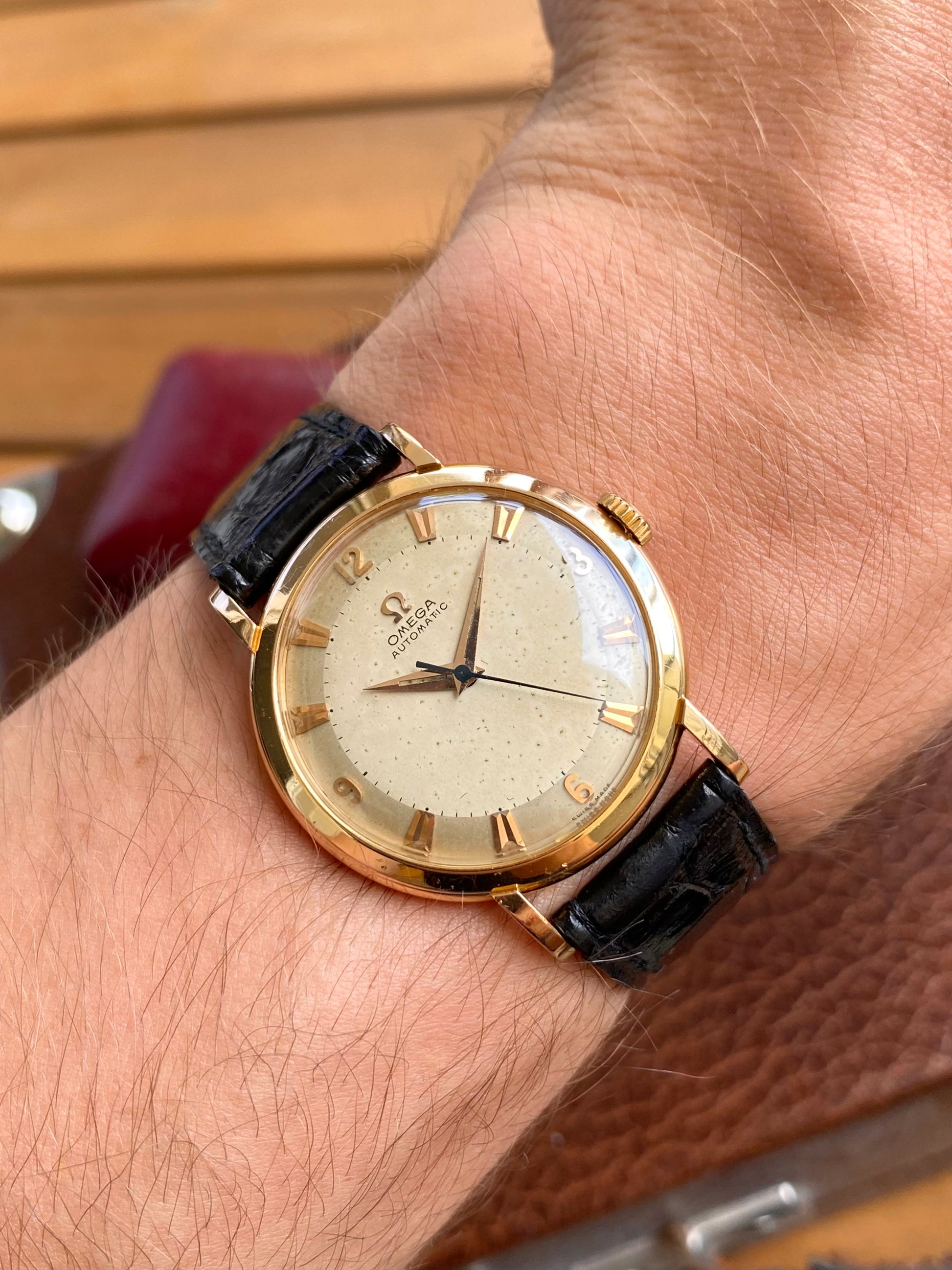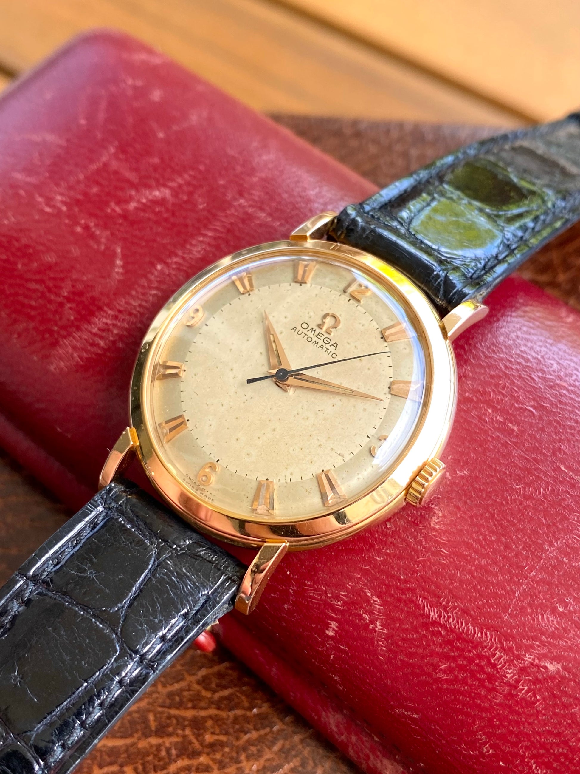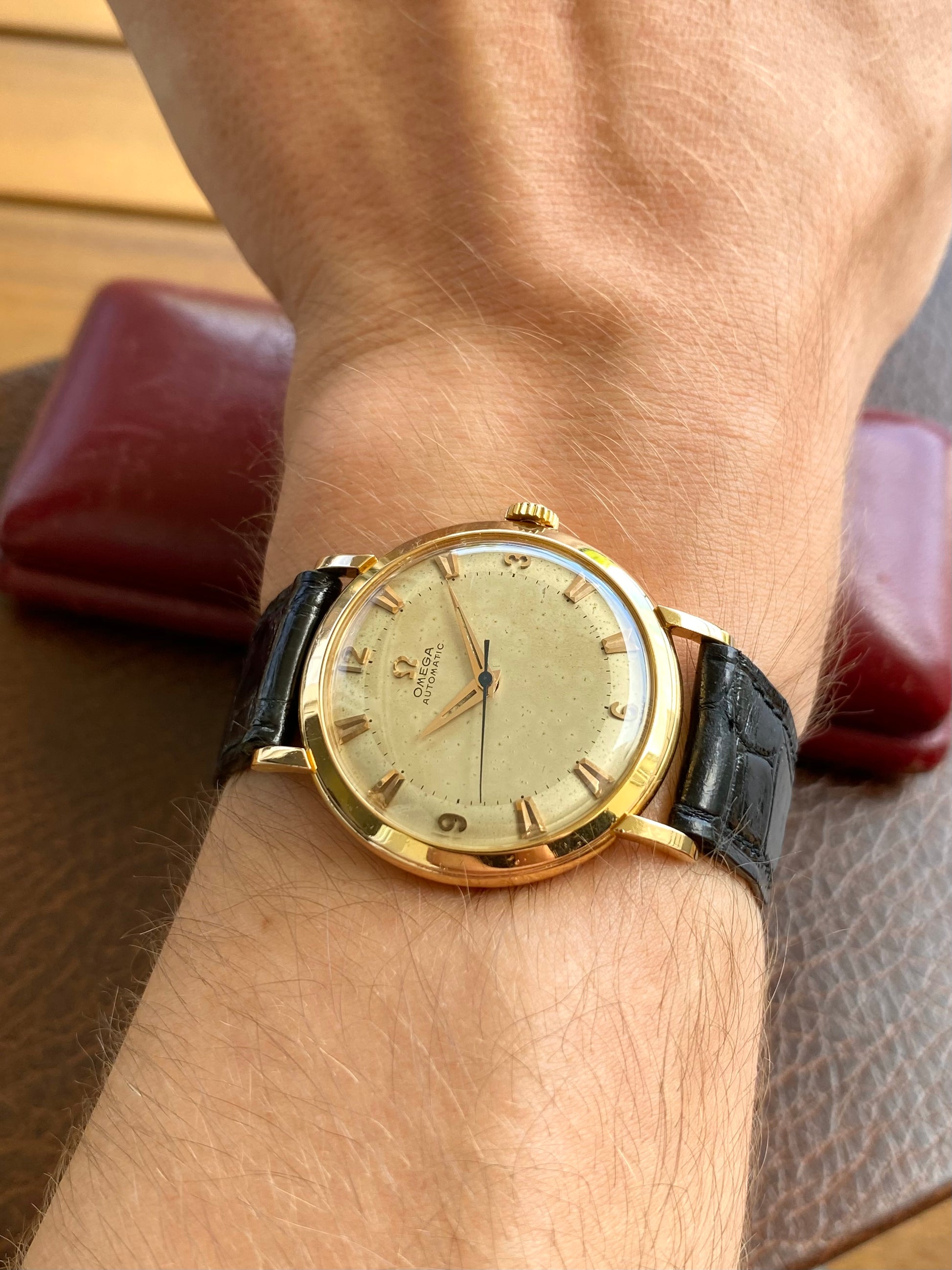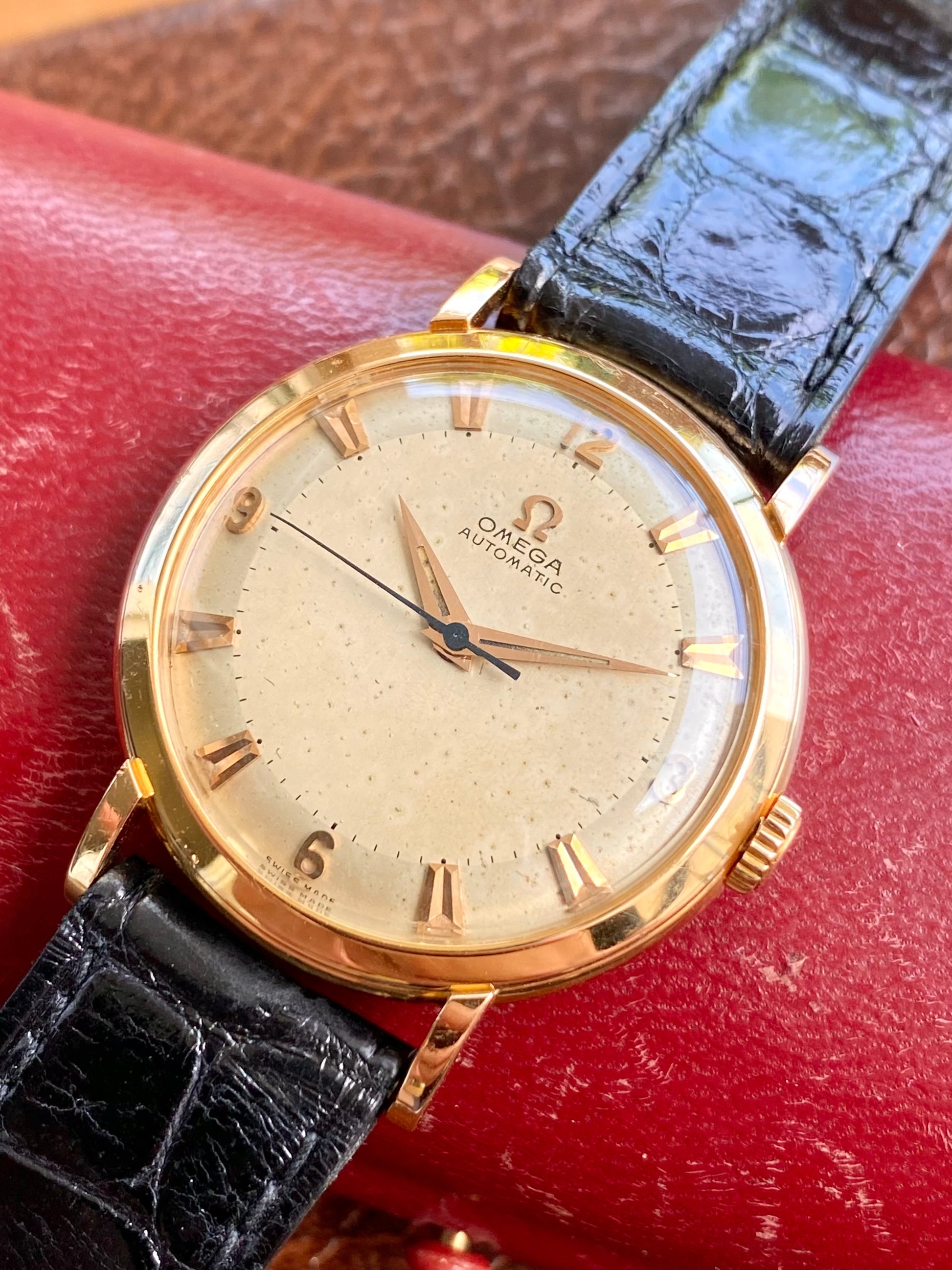 Omega Automatic Or Rose 18k 750/1000 Montre Vintage Mécanique Cal.354 Bumper 1953 + Boite